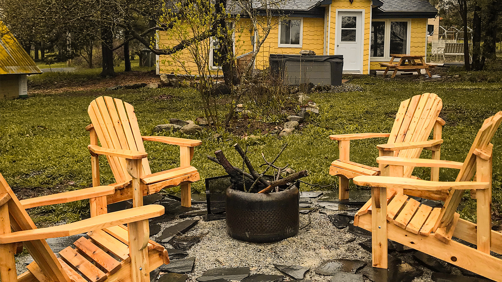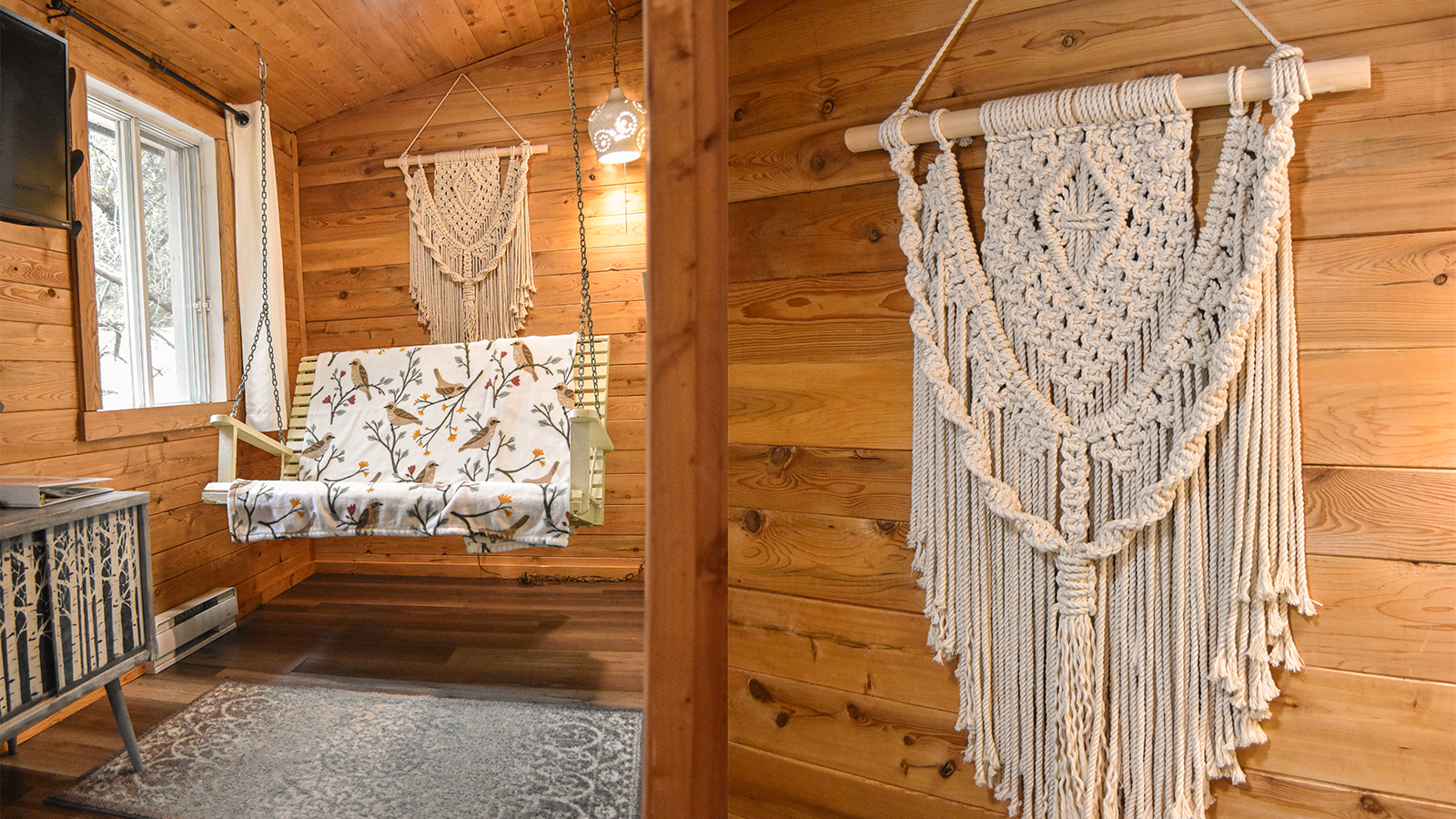 La place à Marie-Anne est un petit chalet douillet aux allures rustiques. La cuisine inclut une cuisinière au bois et une électrique. Son salon est lumineux, avec un sofa et une chaise d’appoint. Un boudoir ayant une balançoire suspendue. Le chalet a deux chambres fermées, l’une avec un lit queen et la seconde avec un lit double, pouvant accueillir jusqu’à 4 visiteurs. La salle de bain dispose d’une douche. L’espace extérieur offre un spa privé, un espace à feu, plusieurs chaises, et un barbecue. Le chalet inclut le Wi-Fi et un téléviseur. Les animaux sont acceptés sous certaines restrictions.