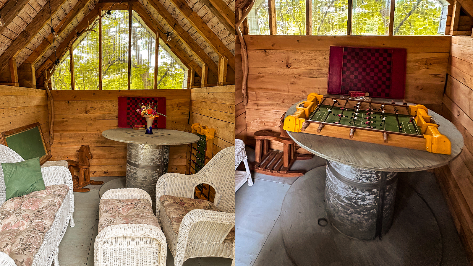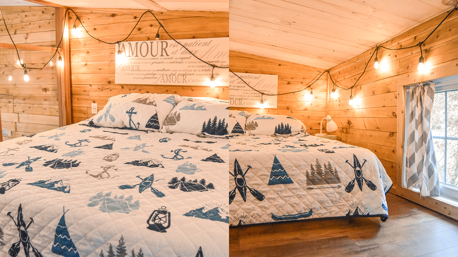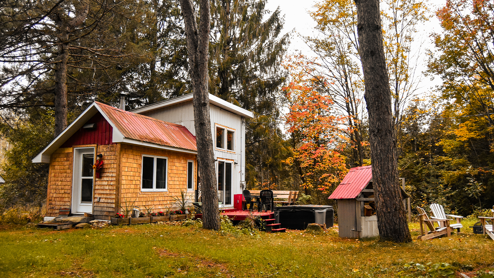Le refuge à Jules offre un salon avec une balançoire double suspendue, un sofa-lit queen et un téléviseur. Sa cuisine est équipée et offre un espace de salle à manger. De plus, ce chalet dispose d’un poêle à bois avec four intégré. La salle de bain atypique est style western, avec une douche. La chambre se trouve sur une mezzanine, avec un lit queen. Le chalet peut accueillir 4 personnes. À l’extérieur, un patio avec places assises, un spa privé, un espace à feu incluant 4 chaises, un salon d’été avec jeux, ainsi qu’un barbecue. Le chalet inclut le Wi-Fi et un téléviseur. Les animaux sont acceptés sous certaines restrictions.